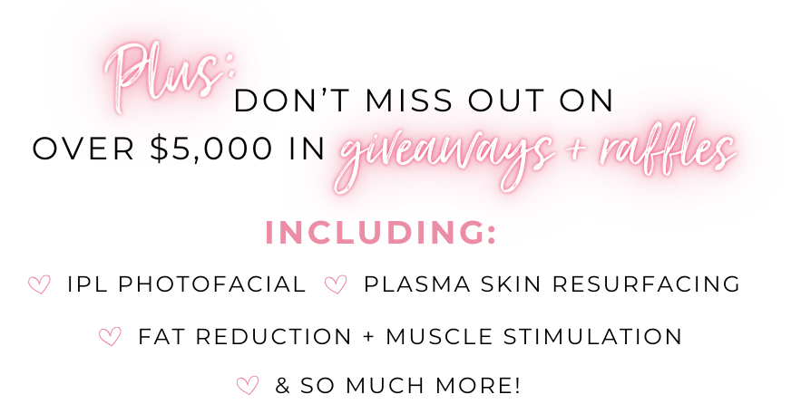 Love yourself first this Valentine’s season 💖 Join us for an exclusive self-care event featuring weight loss, body sculpting, and advanced skin tightening treatments, complimentary consultations with our expert providers, exclusive one-day-only Valentine’s savings, OVER $5,000 in giveaways + prizes, & SO MUCH MORE!